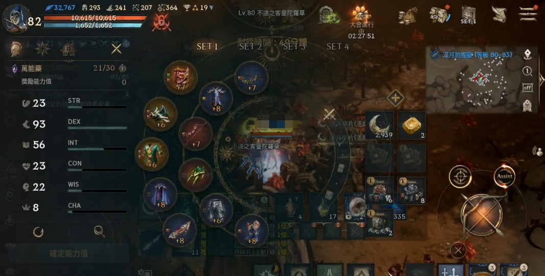 【妖精、82等、安特】妖精,全身藍裝防禦破300,1紫娃死騎1紫技(大火)