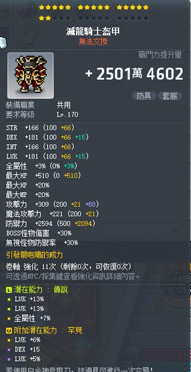 【滅龍騎士盔甲】17星33%幸含全 附加罕雙 全V捲滅龍