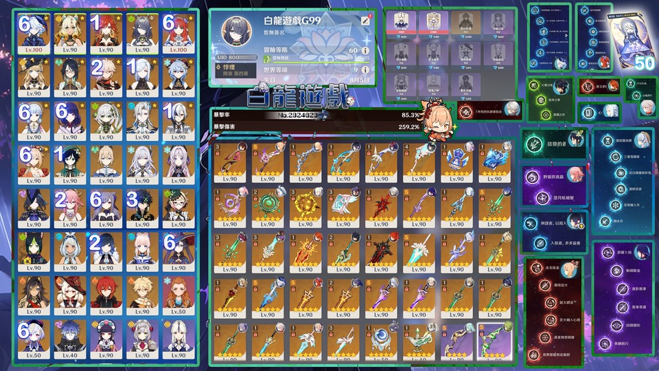 【男、60等、63金角、60金武】G99_妮露6+5水神6+5雷神6+5宵宮6+5綾華6+5基尼奇3+2火神1+1