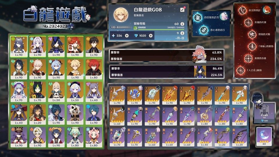 【男、60等、25金角、10金武】G8_火神6+1茜特菈莉2+1克洛琳德0+1菈烏瑪閒雲鍾離萬葉甘雨_生日未設