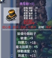 【9敏黑雪鞋】火速交易9敏黑雪鞋子盜賊裝備 盜賊三十等鞋子