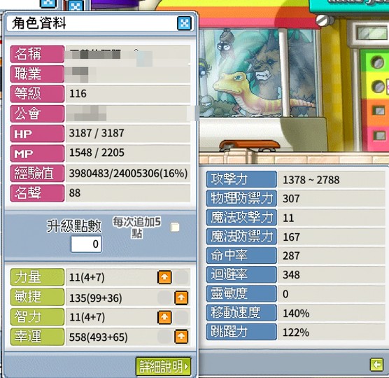【116等、神偷_暗影神偷】有眼鏡/表攻2788/象徵54個/有寵物+123技能