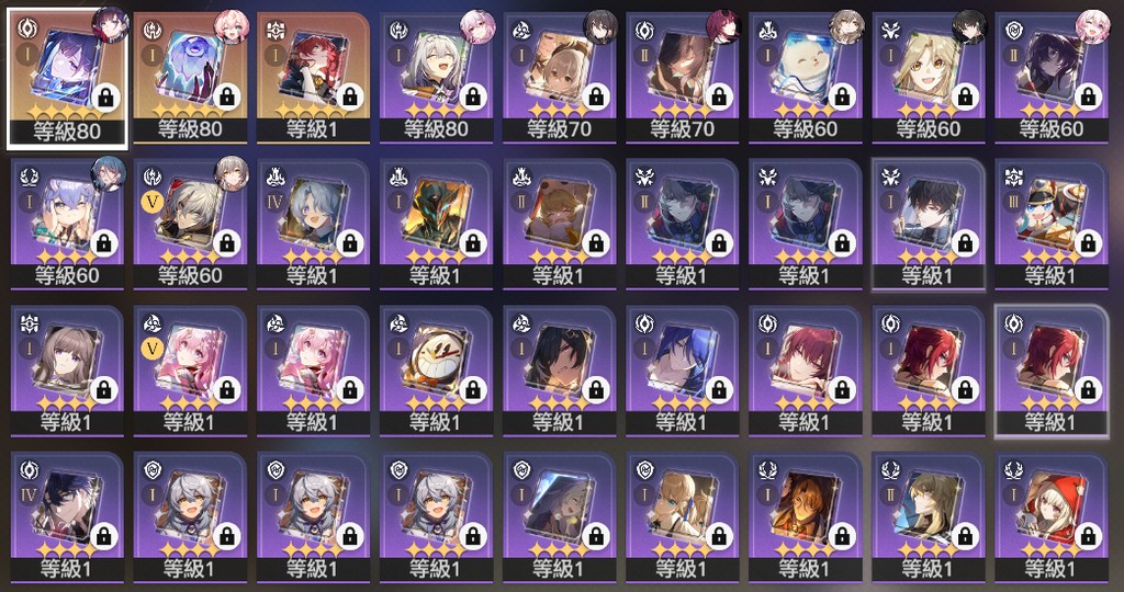 【女、63等、9金角、2金專】2命長夜月+阮梅+風堇+01海瑟音+卡芙卡+刃+1命克拉拉