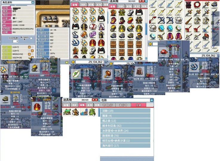 角色資訊: • 等級:135級祭司13%+300up粒子經驗物 • 已購買:永久寵物、寵物技能456、造型券 帳號資源: • 背包擴充至420格,物品卷軸未清空 •已解上古魔書(可買召喚/魔法石,萬能藥) •有眼鏡/電吉他項鍊(皆乾淨) 女神羽毛 已解9成以上任務(手動號) •活動加成: 1智西瓜項鍊 血水全換 魔水換4 背包 高級順移石 •楓幣保底3000w UP •背包有大量乾淨耳環/10~11屬套服/7~9屬鞋子/披風/手套可搞裝/護身符3 •背包有價值裝備不清 賣掉保守估計300雪(90ad霸傑2 冰槍 白雪爪 梅杜斯…) 特色: •預計一個半月開放四轉 天怒可點滿直接開炸/炎魔 •野王前置任務已破可刷王 價格與交易方式: • 價格:13000 •改信箱/手機號碼 •走8591實收