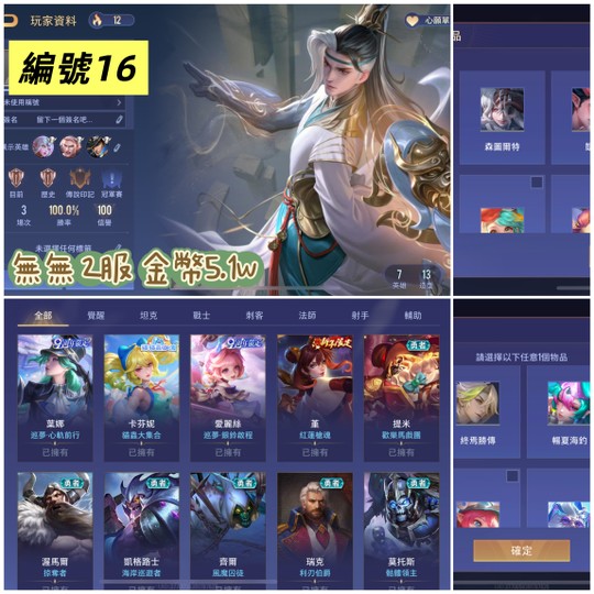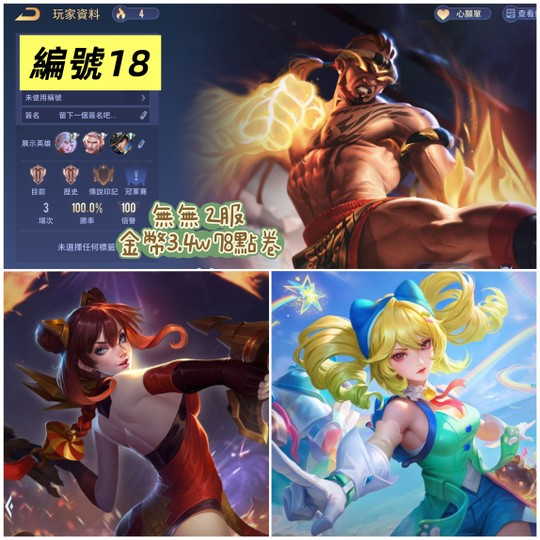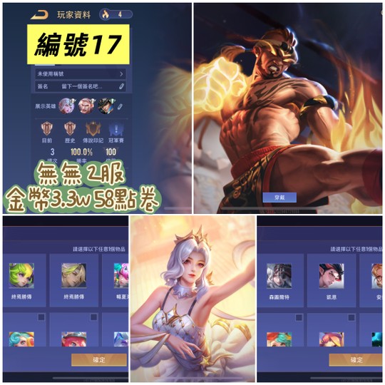 【金幣號】咖波卡芬 堇紅蓮 無無 (非金幣帳)一拳超神/凡恩神器