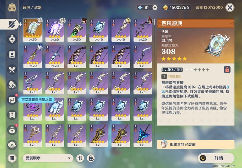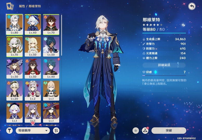 【女、51等、7金角、1金武】售51級原神簡帳,前身為科技號(介意勿拍),有水神以及龍王,另一隊可用二命草神