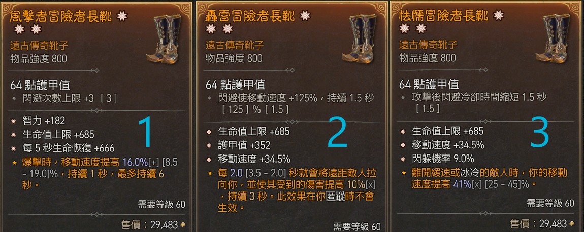 3星 3太古 3遠古 智力 生命值 秒回 護甲 移動速度 靴子