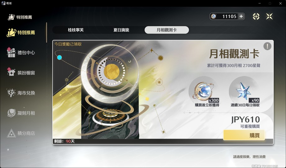月相11105 還有90天小月卡 660珊瑚 相約2鏈資源