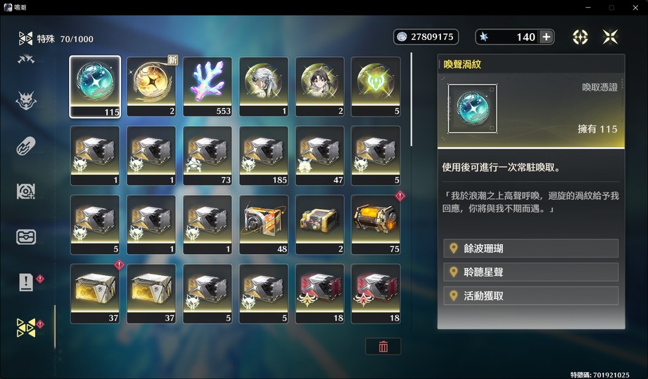 【80等、12金角、10金武】5滿鏈嘉貝莉娜6+1長離讚尼吟霖守岸人6+5露帕 資源豐富聲骸畢業