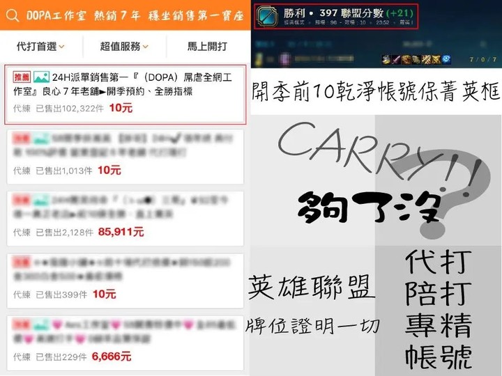 ※聘請打手代打本身已違反召喚師公約,完成後若遊戲公司發現並凍結帳號,怒不賠償與退款,但會協助取回帳號。