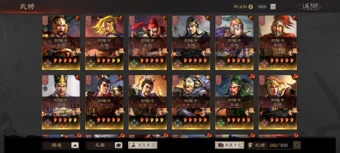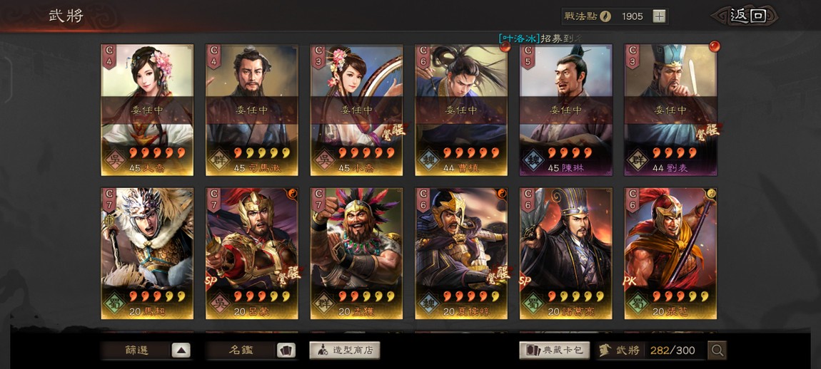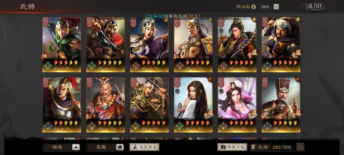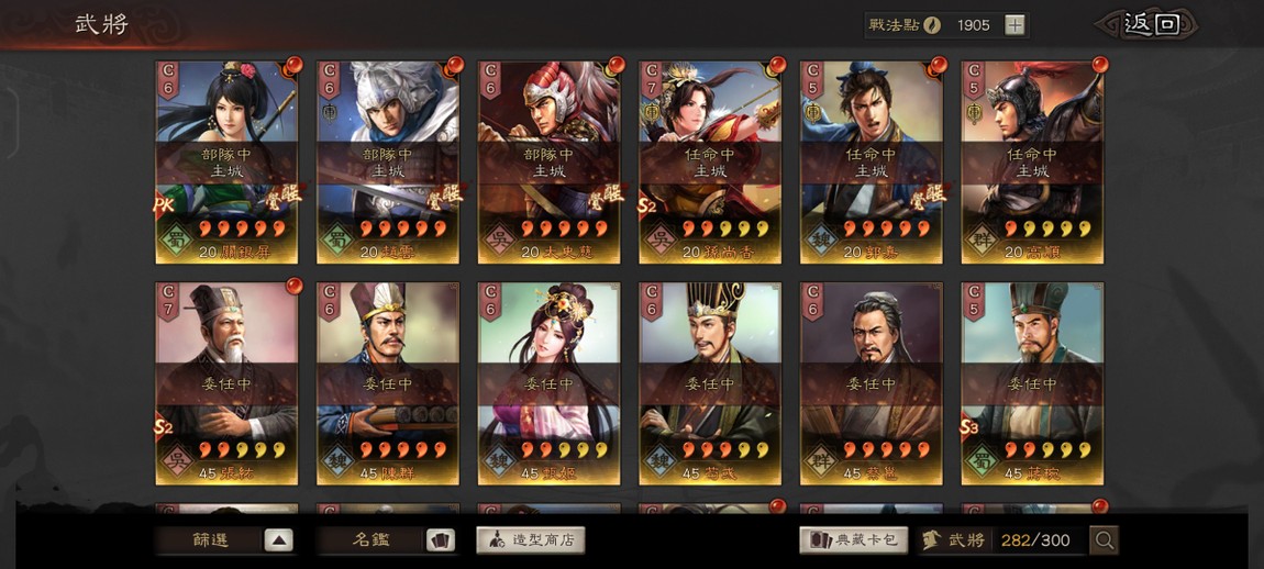 PK24010 重要事件戰法都有 剩下的不重要的除了臨鋒都可以直接換出來 多特技 可組多隊 多素材武將 礦業100 大小月卡還有1個月 未綁任何第三方
