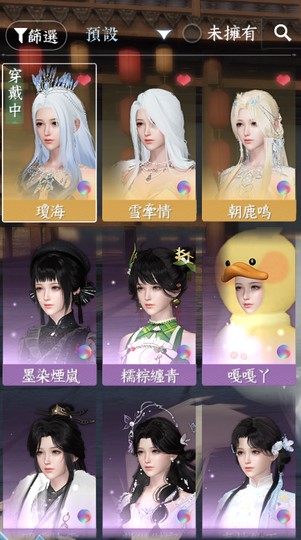 頭髮: 瓊海, 雪牽情, 朝鹿鳴