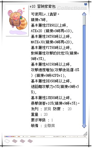闇天使之翼 冒險家背包 +12 幸運湧現鎧甲 力量湧現鎧甲 冒險者背包 貪婪背包