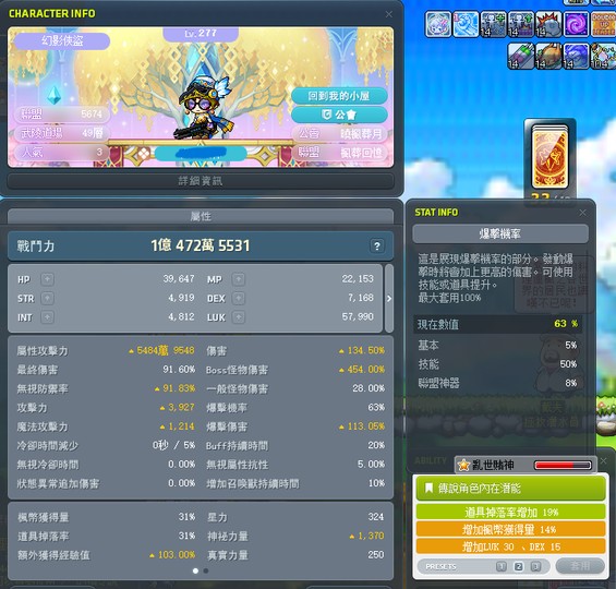 圖太多放不完 打寶裝有一套(楓幣量100 掉寶120 可私看裝) 秘藥+神器+聯盟雙掉券,雙掉都可以到200以上