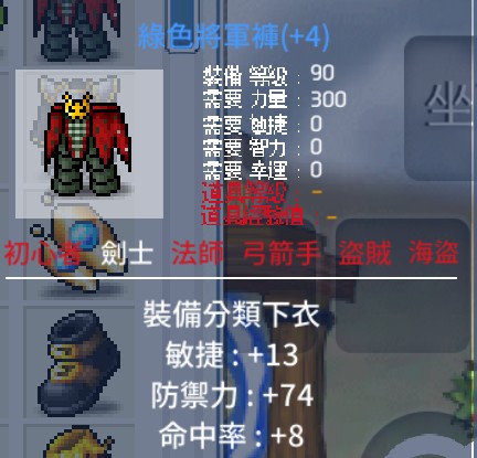 【46屬90等劍士上下衣 高力】如圖19力17敏10命 25屬上衣21屬下衣