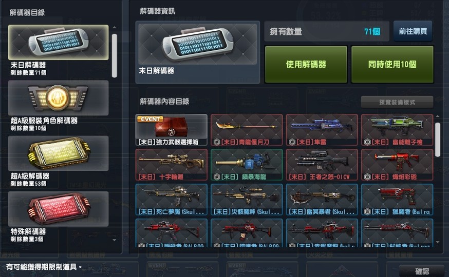 【1史詩武器、50王牌武器、39王牌角色】龍神多賽季多角色進階可改