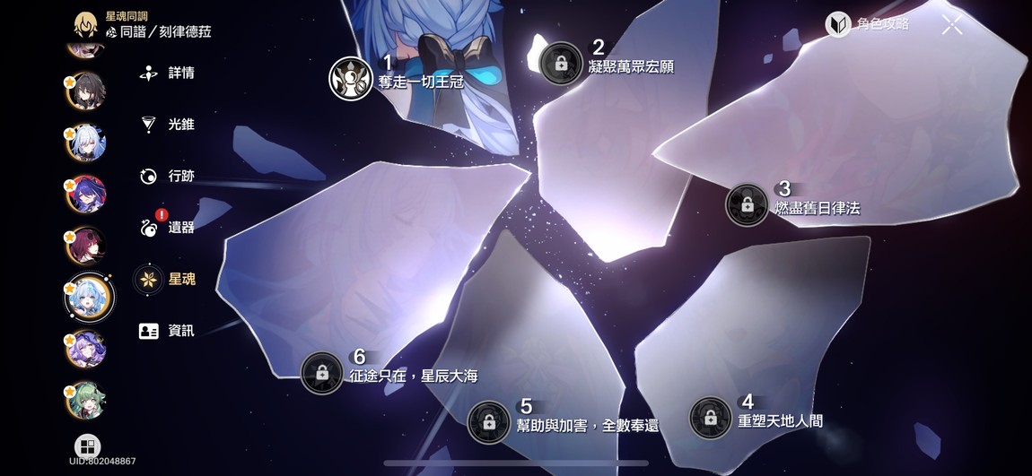 (除了卡芙卡要光錐,鏡流、黑天鵝、雲離)其他都可以用