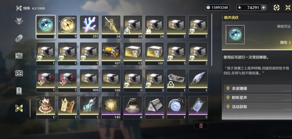 內容:6+1尤諾 2+1洛可可 0+1今汐 0+1長離 3鏈維裏奈。 76000星聲+喚聲渦紋3抽+浮金渦紋9抽+鑄潮波紋24抽珊瑚290 雙倍沒用過,開服賬號了,玩到現在呢 ,屯屯鼠