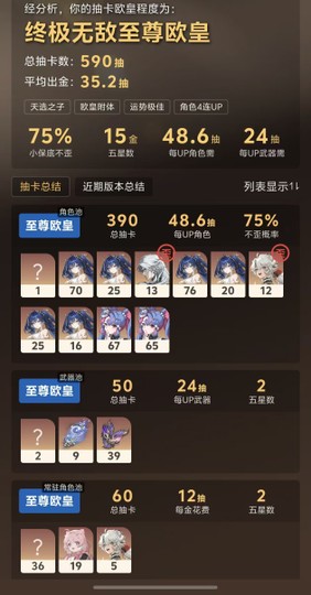 【80等、13金角、9金武】6+1尤諾 2+1洛可可 0+1今汐 0+1長離 3鏈維裏奈。帶500UP抽