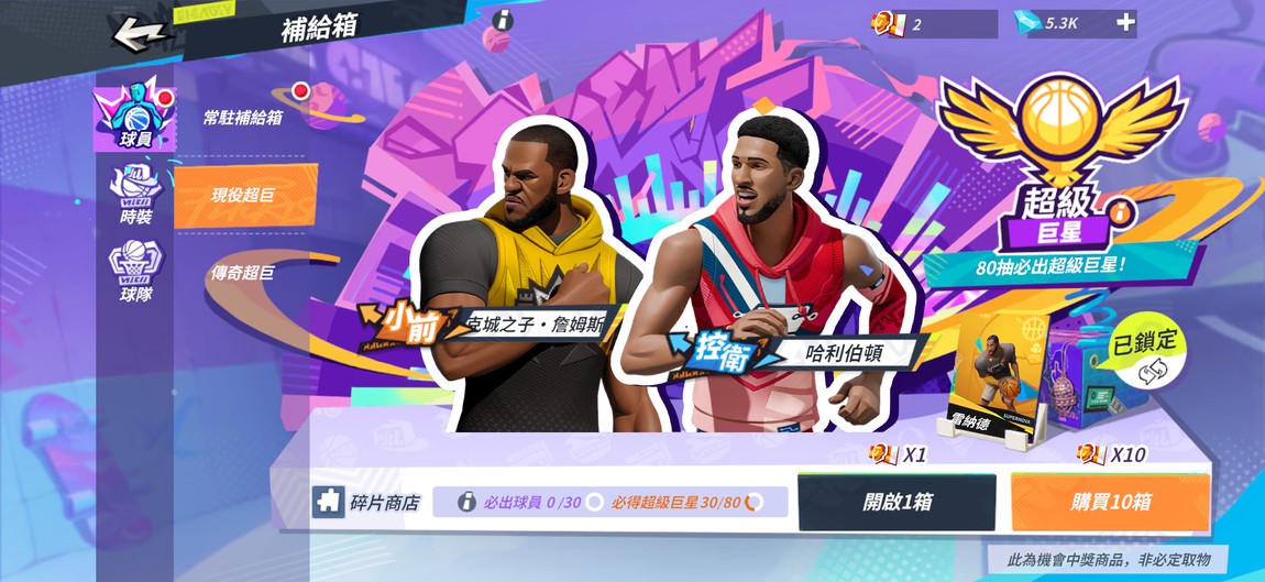 留5365顆鑽石跟130張巨星天賦卡自選包