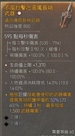 D4-S10煉獄混沌-1太古生命/資源消耗降低-長柄武器