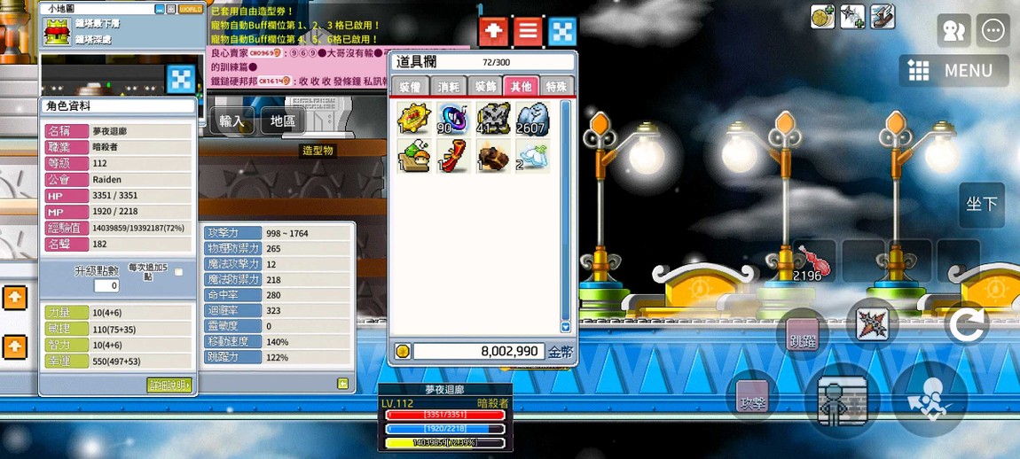 【112等、暗殺者_夜使者】112暗殺者(鏢賊)不清裝出售 勳章都有 拉圖 黑輪前置已解好 血水都喝滿