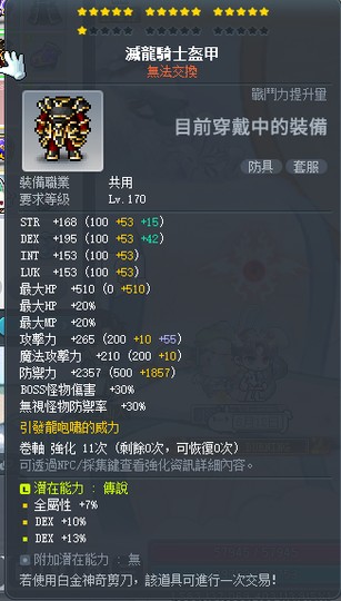 【滅龍騎士盔甲】16C 30%敏 含刀