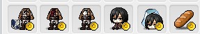 圖6非加攻正品分別為調查兵團服裝、米卡莎服裝、里維服裝、頭上的米卡莎 跟米卡莎在一起 莎夏的可口麵包