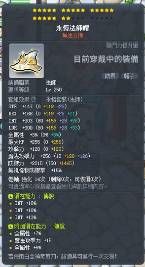【永恆法師帽】永恆法師帽 33%智 雙傳 22星 全B