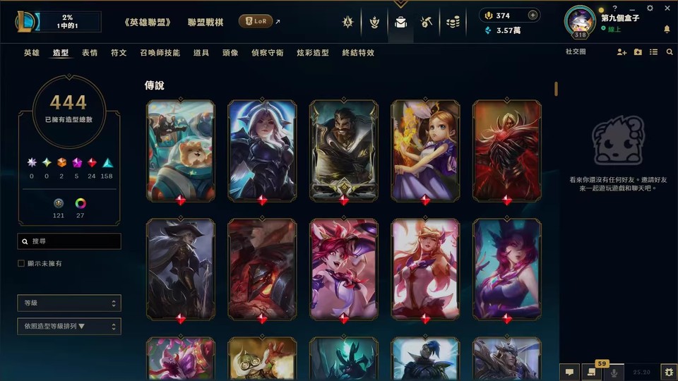 英雄聯盟臺區lol臺服444皮膚162英雄LOL臺服【未綁】可轉區,日服,歐服,東南亞服,越南服,等。韓服美服不行