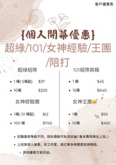 {個人開幕優惠}超綠/101眼鏡/女神經驗/女神王團/陪打(個人接案100%手動