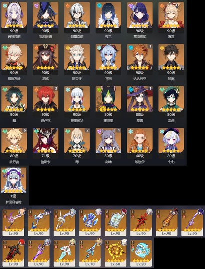 【女、60等、24金角、14金武】50金_雷神專_莤特菈莉專_神里專_僕人專_甘雨專_已畢業_可議價