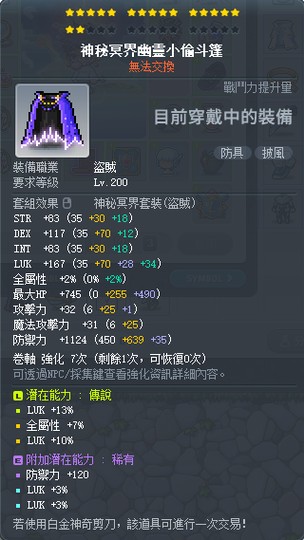 (2)17星30幸 附加稀有3+3幸 神秘小偷披風 1000