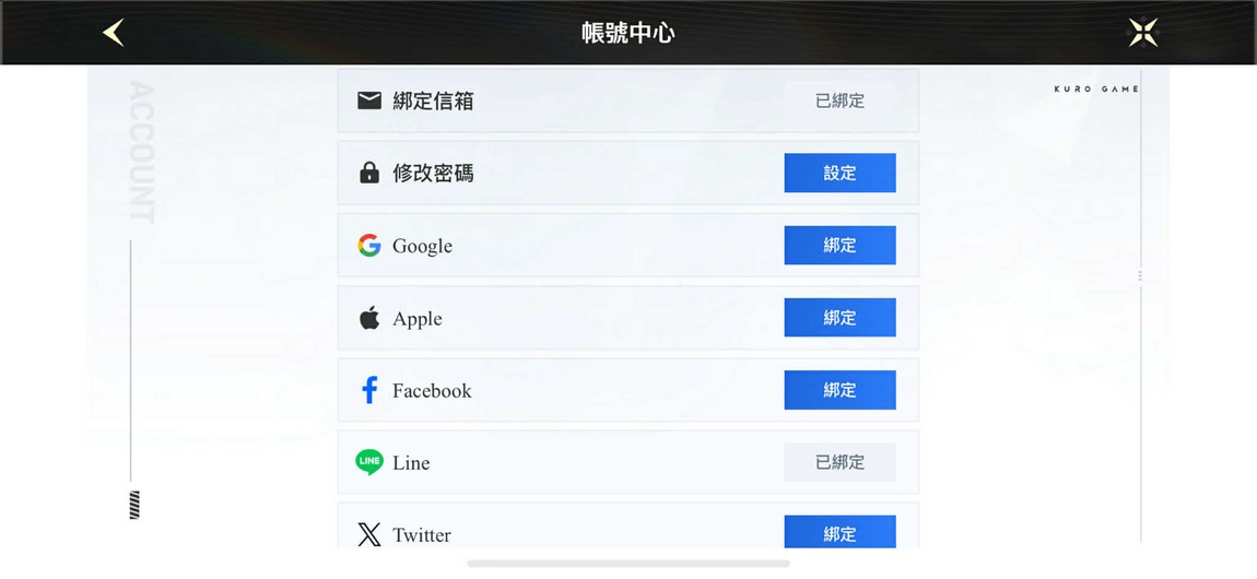 帳號目前綁定 庫洛信箱/LINE