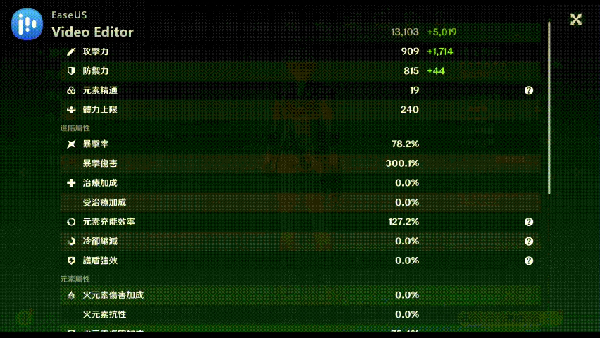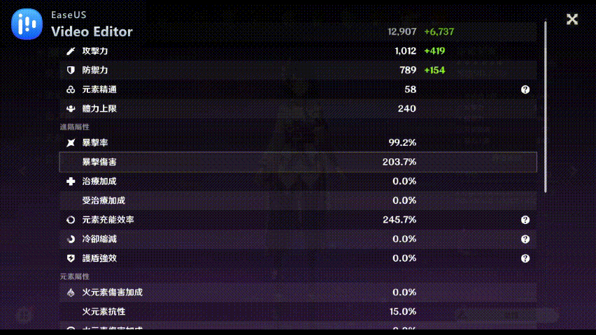 聖遺物練到頂.加上隊伍BUFF全開後.滿精武器的提升大概只剩10%