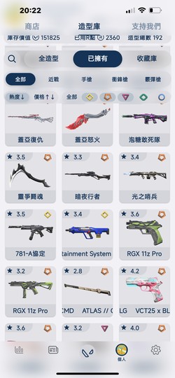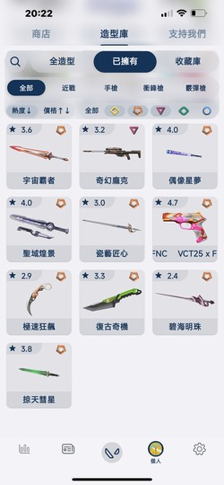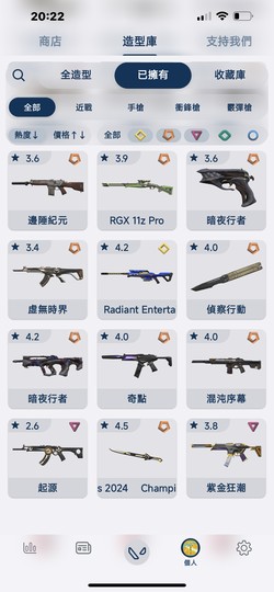 【鑽石、52槍、8刀】【鑽石、52槍、8刀】冠軍45套 VCT刀暗夜套多手感暴徒菲可砍