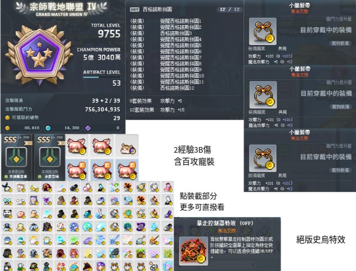 【290等、惡魔復仇者、9755戰地、710AUT】六轉滿、雙創世武公洗好、25星大三排控制、59%米、史烏特效、二本280火毒