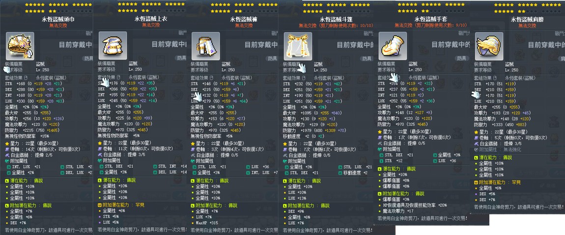永恆盜賊頭巾 頂%全 22星 14B捲 附加傳說3排 15000 實收