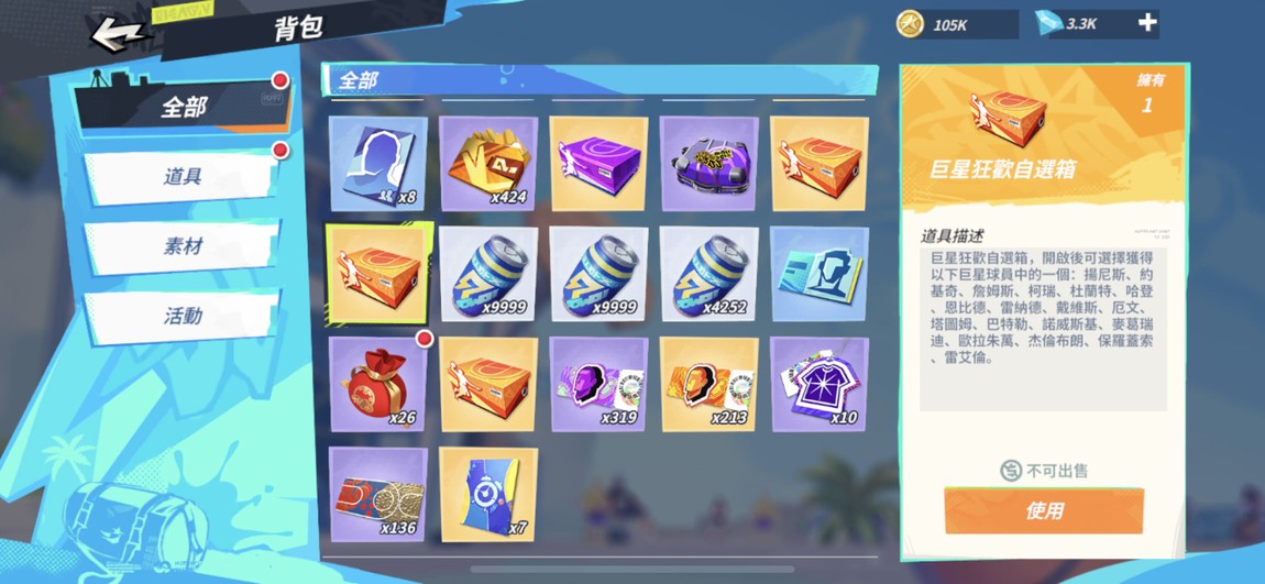 定向招募:10/18號可抽、鑽石:3309、球館幣:28,900(可換大頭卡)