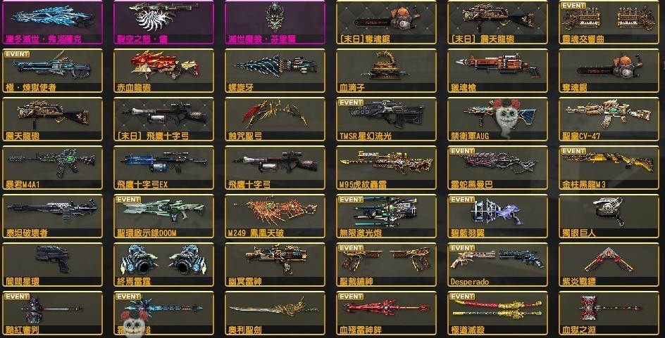 【3史詩武器、40王牌武器、27王牌角色】迷麥、三件套蛇神、裂空斧頭、芬里爾新手雷、霜狼槌、深紅稱、多把經典槍枝