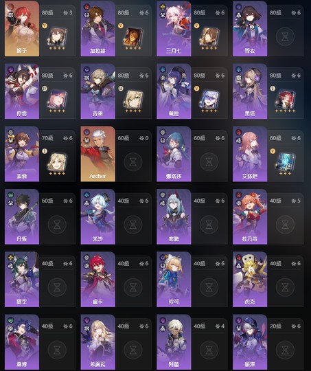 多角色組隊帳號,三路可通,主要2+1黃泉、花火和1+1緹寶,帳號內目前角色武器池皆為大保,可dc看號