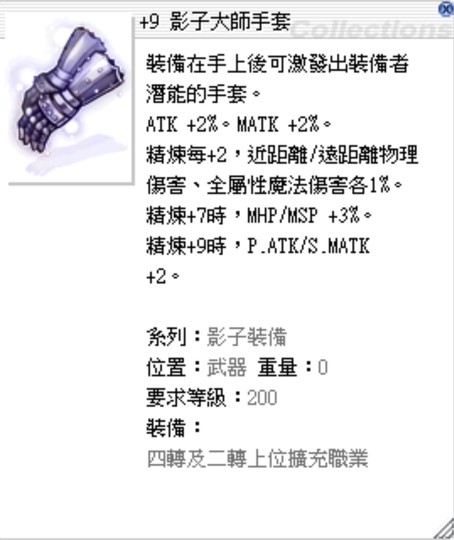 +9影子大師手套+9影子大師神盾/+18影子大師套