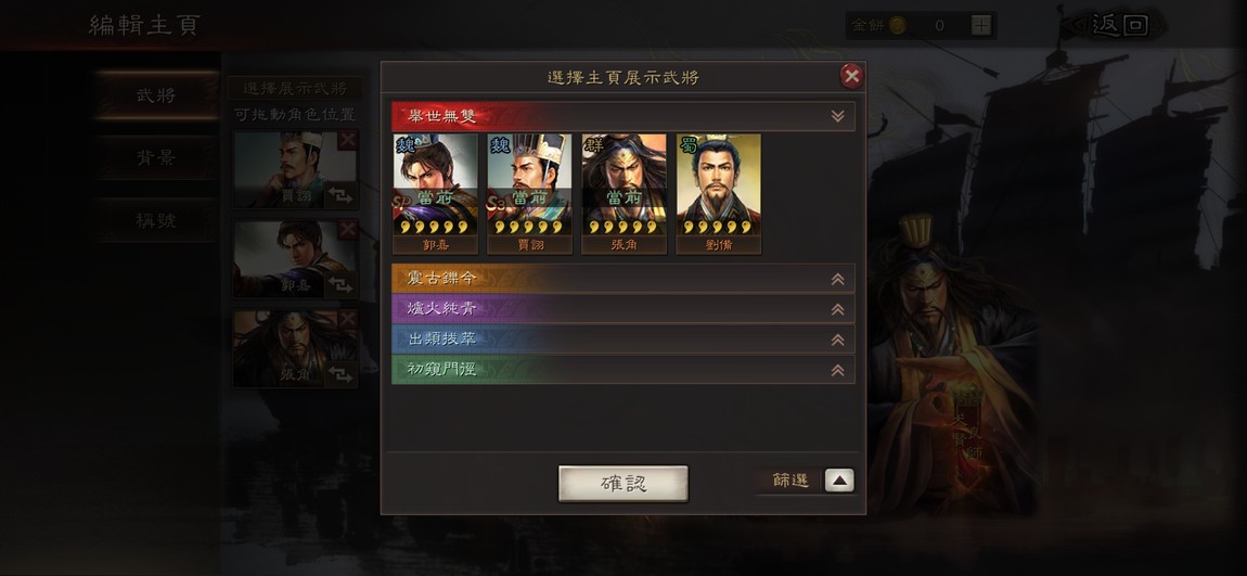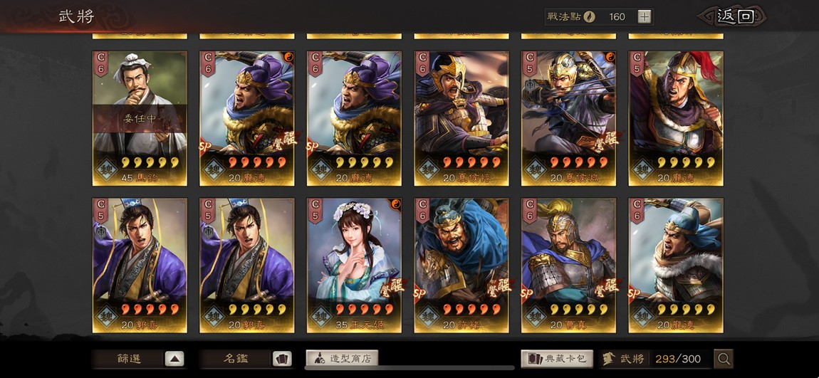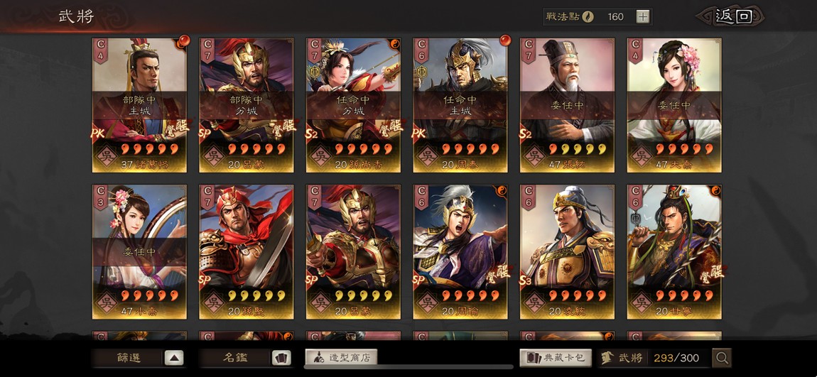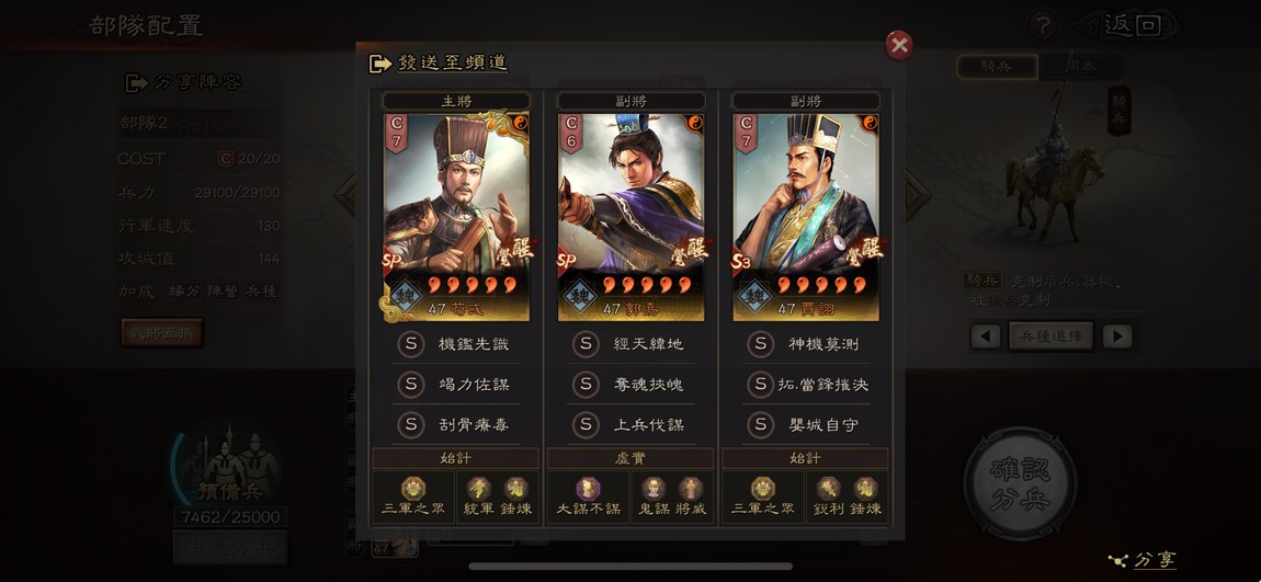 除了三幻神之外全部都能組 如社稷弓 北伐槍 吳騎 孫權滿紅可以玩玩 遼姬騎 三仙盾 詩詩盾 核彈張 關關張 等風熊