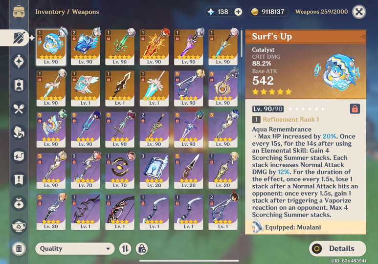 原神亞服58級 34金 有50抽 有菈烏瑪