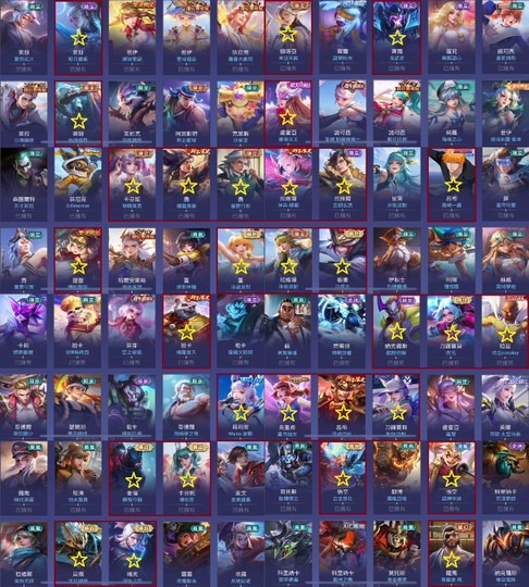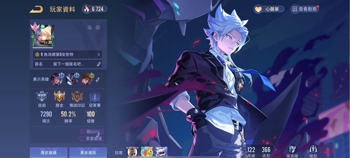近全英雄四百多造型!共122英雄361造型!勝率近51%!!共6次S戰場傳說印記!!常用奧義皆已齊全!!