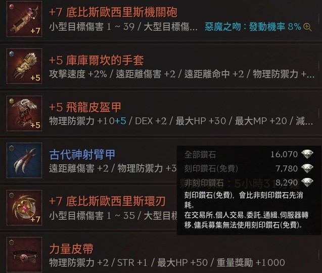+2天上暗甲+3祝福血之戒指+2賢者項鍊+0知識皮帶