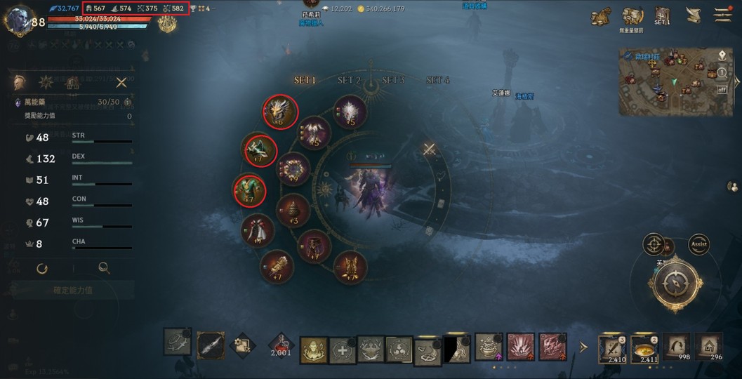 滿裝備(如圖) 攻擊裝 - 防/攻/命: 567/375/582(全紫裝會更高,不含活動收藏)