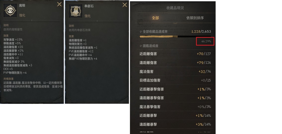 裝備收藏46.29%(不含活動收藏), 之前是近戰轉遠攻, 所以也有搞近戰收藏, 之後要轉近戰也很適合
