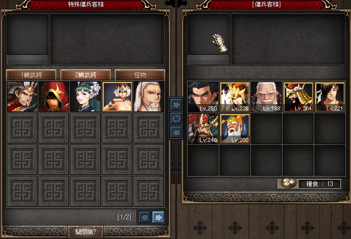 252二轉主角、 252雀天、250台冥、250呂布、日兇