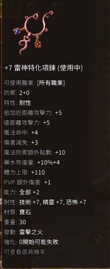 賣+7雷神特化項鍊 +7雷神項鍊(發動:雷擊之火)